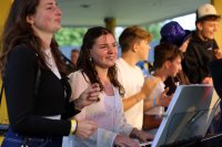 Bei den Jubiläumsplanungen war von Anfang an klar: Es muss ein krachendes Finale geben! Das ist dem JAG mit der großen Jubiläumsparty gelungen: Rund 2000 Menschen feierten den Geburtstag des Gymnasiums auf dem Bad Berleburger Schützenplatz. Besonders schön: nicht nur die aktiven JAGlerinnen und JAGler, Eltern und Freunde kamen zum Feiern, die Party verwandelte sich in ein großes Klassentreffen ehemaliger Abiturjahrgänge. „Das ist wirklich eine tolle Idee, so kann man auch noch einmal Leute aus anderen Jahrgängen wiedersehen, die man sonst wahrscheinlich gar nicht mehr wiedersehen würde,“ schwärmten die Abiturientinnen und Abiturienten des Jahrgangs 2004.