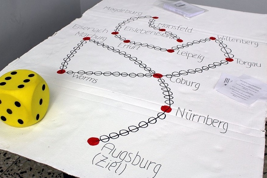 Mitspielende müssen mit einem großen Würfel und guten Antworten auf knifflige Fragen der Schülerinnen und Schüler versuchen, möglichst schnell von Eisleben nach Augsburg zu kommen. Die generellen Öffnungszeiten des Luthergartens sehen folgendermaßen aus: an den Samstagen, 8. und 15. Juli, ist die Ausstellung von 10 bis 17 Uhr geöffnet. Bis zum letzten Samstag in der Reihe ist es außerdem möglich für alle Interessierten, Gruppenführungen zu vereinbaren.