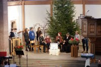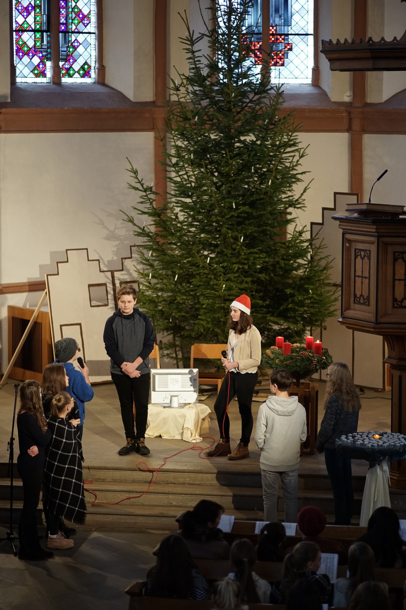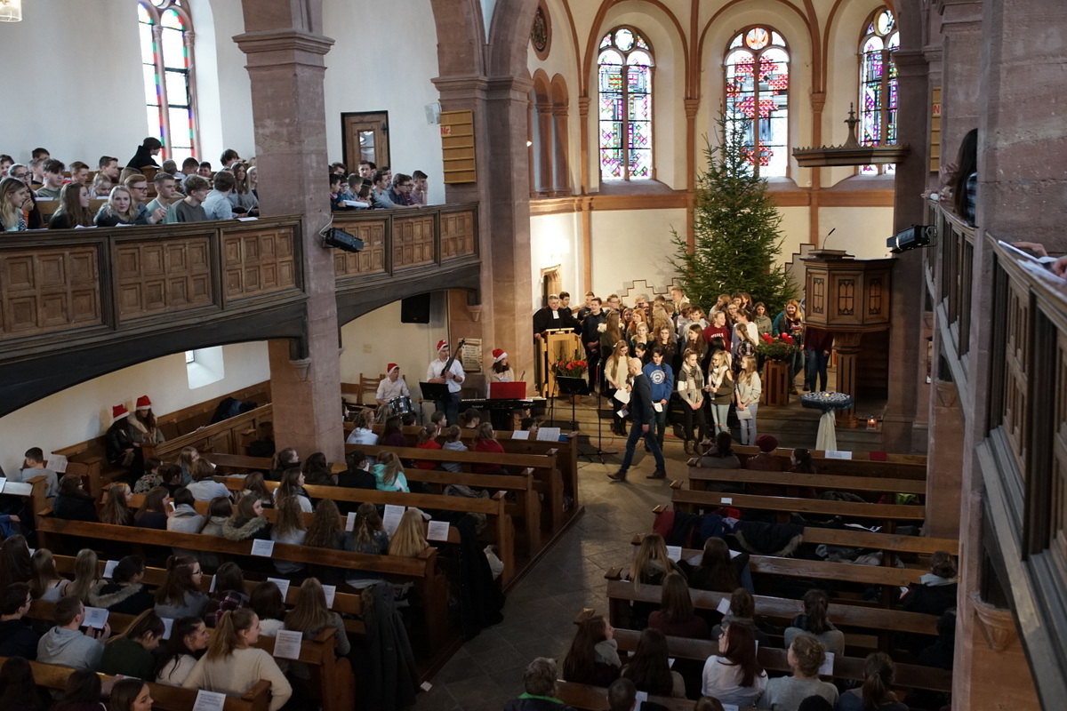 Chöre der 6. und 9. Klassen und Teile der Schulband (mit Weihnachtsmützen!) gestalteten den Gottesdienst musikalisch.