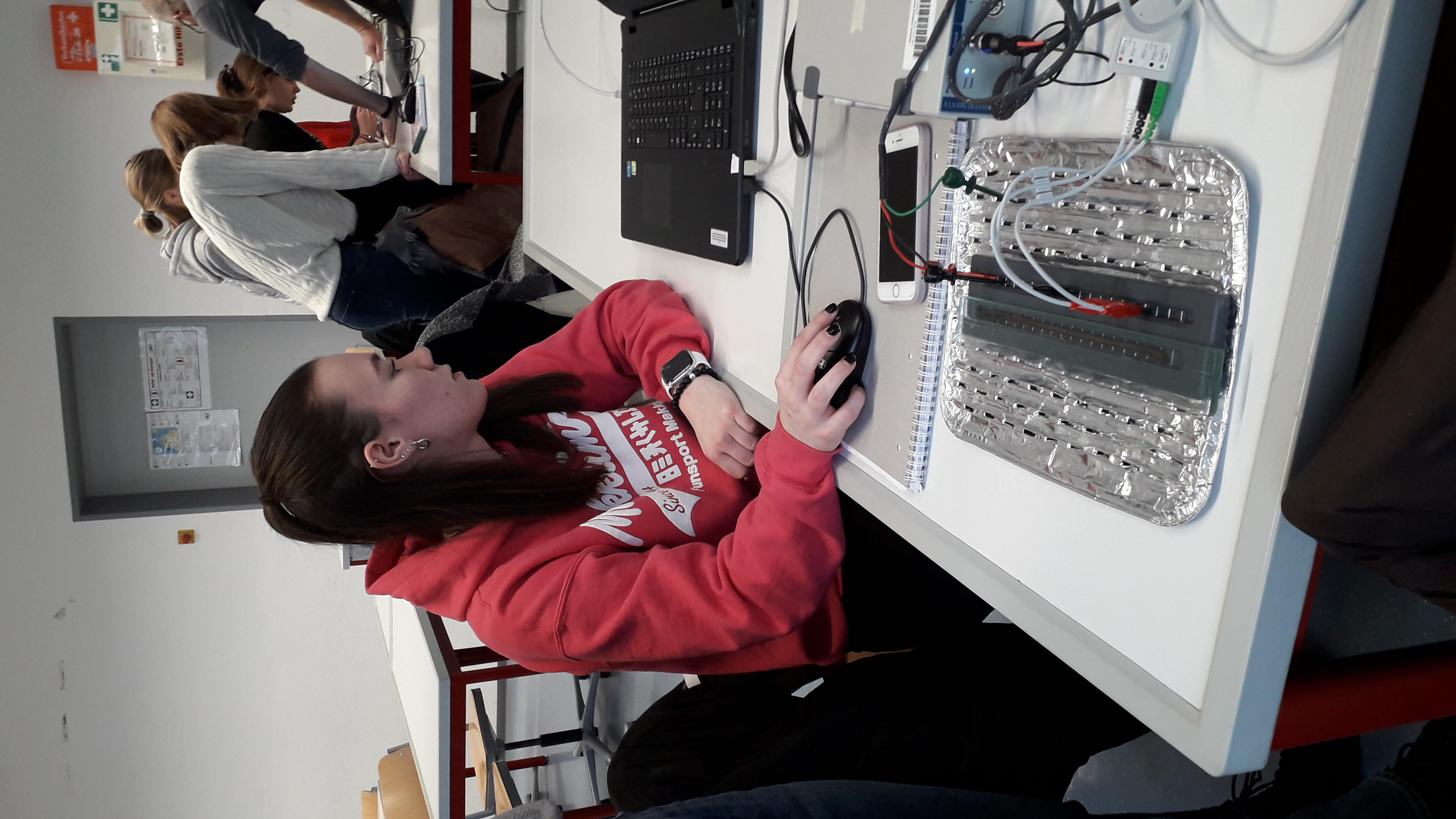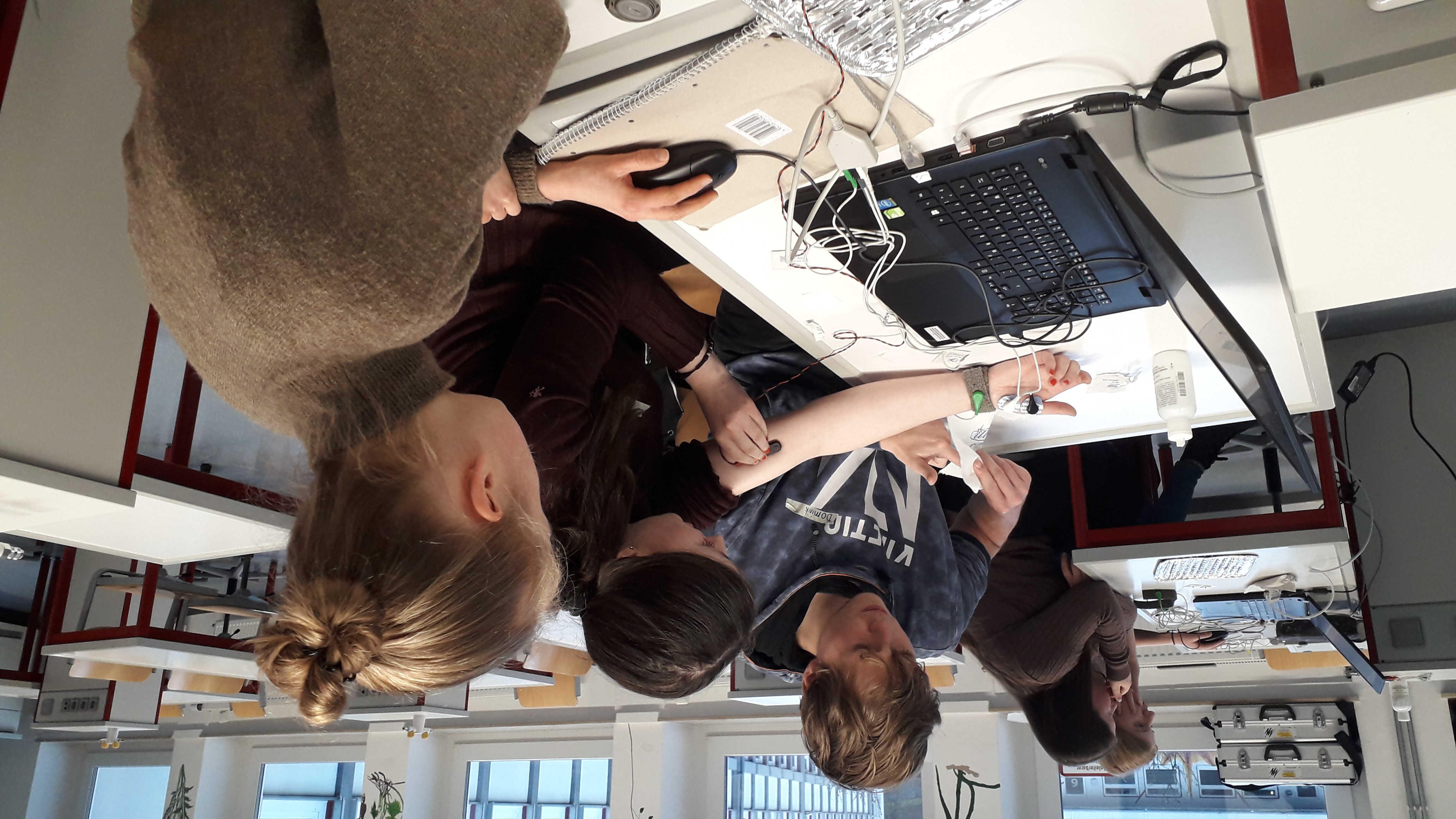 vc Bad Berleburg. Vier Schülerinnen haben sich um einen Regenwurm versammelt, der an Messinstrumente angeschlossen ist. Abwechselnd schauen sie, ob es dem Probanden im Biologieraum des Johannes-Althusius-Gymnasiums gut geht und ob der Computer vor ihnen die gewünschten Messwerte ausspuckt.