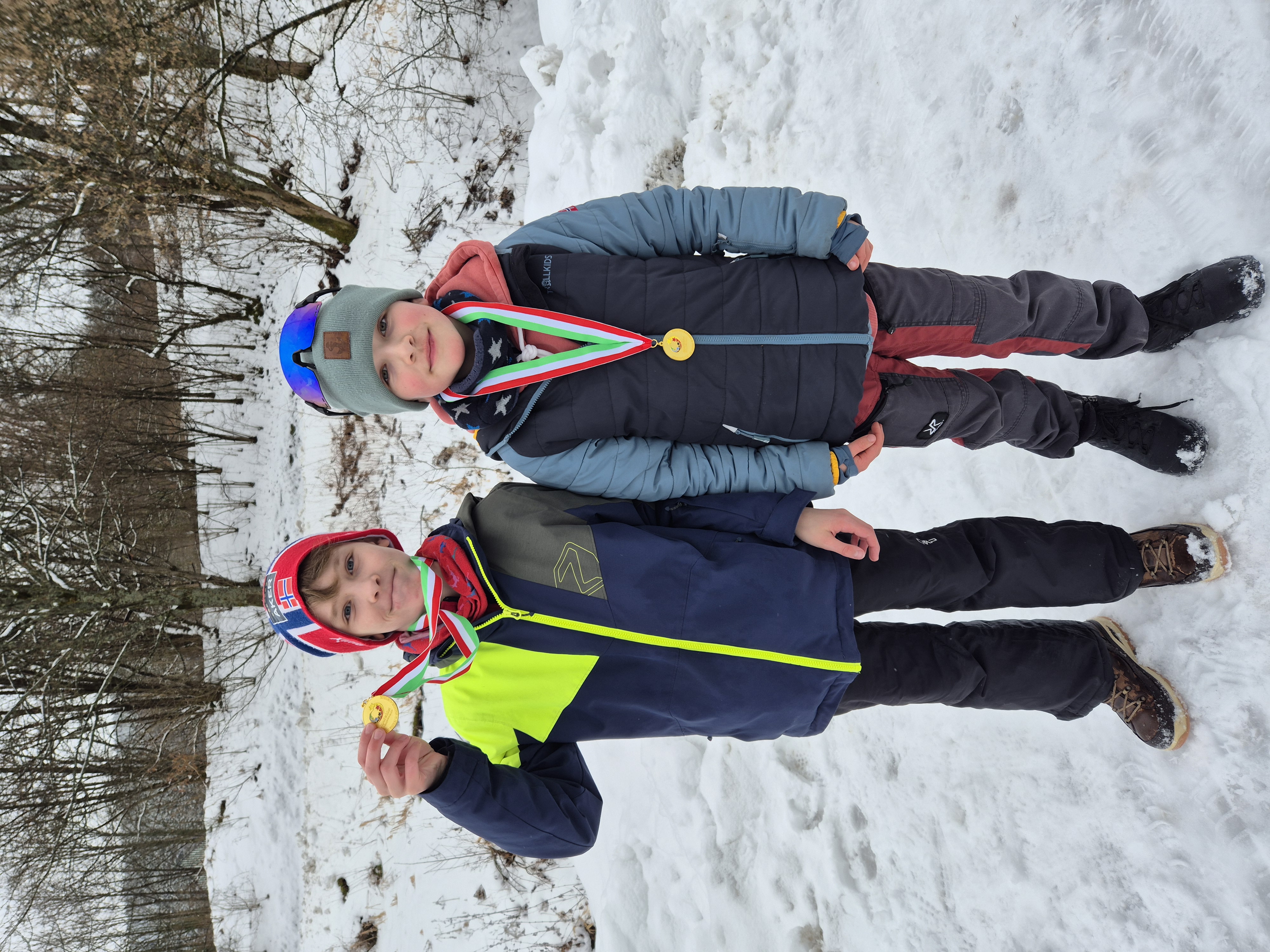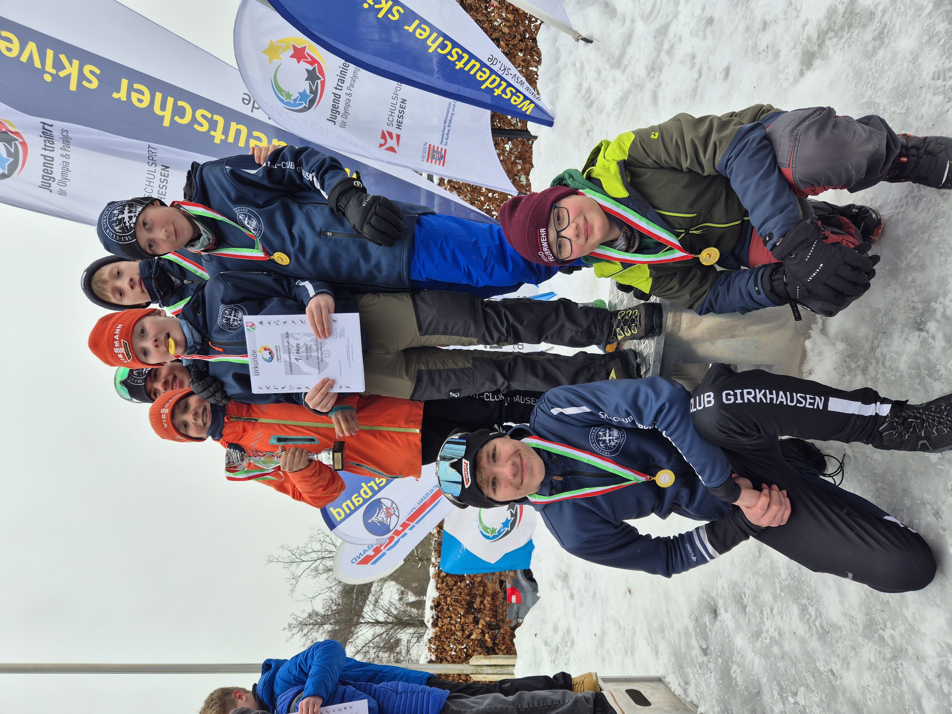 Die ersten Zieleinläufe machten bereits Hoffnung auf einen Sieg unserer Schule, da durch die engagierte Laufleistung einige Gegnerinnen und Gegner überholt wurden und dadurch im Ziel erst einmal vor Erschöpfung nichts mehr ging. Insgesamt waren alle zufrieden mit ihren Leistungen und nun begann das lange Warten auf die Ergebnisse. Kurz vor der Verkündung der Siegerinnen und Sieger gab es jedoch noch einen Schockmoment, als klar wurde, dass einige Athletinnen und Athleten unserer Schule beim Slalomhindernis Strafsekunden kassiert hatten, doch selbst das konnte der starken Leistung nichts anhaben. Am Ende siegten beide Mannschaften souverän, die Jungenmannschaft sogar mit der Bestzeit im Vergleich der Länder NRW und Hessen. Wir gratulieren unseren Skilangläuferinnen und -langläufern zum Einzug ins Bundesfinale in Schonach!