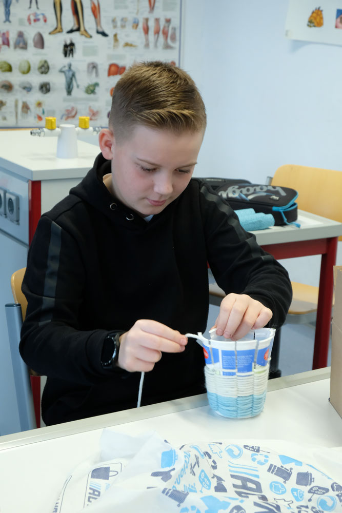 So wird Theater gespielt, gestrickt, geimkert, Seife gekocht, musiziert, modelliert, 3-D gedruckt, gestrichen und gestaltet. Es werden Burger gebruzzelt, Disc Golf gespielt und bei einem Zirkusprojekt Jonglage, Einrad-Fahren und Balancieren geübt … und barfuß über Scherben gelaufen, um so den eigenen Mut zu testen. Die Griffkraft und die Körperbeherrschung werden beim Bouldern in der Siegener Boulderhalle trainiert. Es wird sich auf die Spuren von Johannes Althusius, dem Namensgeber unserer Schule, begeben, Gedenkstätten wie das Anne Frank Haus in Frankfurt werden besucht. Besuche in Museen und Zoos stehen auf dem Programm. Und am Freitag geht es virtuell in die Luft, mit einem Flugsimulator und einem echten Segelflieger in der Gymnastikhalle, der dort vom FSV Schameder-Wittgenstein e.V. aufgebaut und vorgestellt wurde.