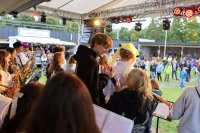Bei den Jubiläumsplanungen war von Anfang an klar: Es muss ein krachendes Finale geben! Das ist dem JAG mit der großen Jubiläumsparty gelungen: Rund 2000 Menschen feierten den Geburtstag des Gymnasiums auf dem Bad Berleburger Schützenplatz. Besonders schön: nicht nur die aktiven JAGlerinnen und JAGler, Eltern und Freunde kamen zum Feiern, die Party verwandelte sich in ein großes Klassentreffen ehemaliger Abiturjahrgänge. „Das ist wirklich eine tolle Idee, so kann man auch noch einmal Leute aus anderen Jahrgängen wiedersehen, die man sonst wahrscheinlich gar nicht mehr wiedersehen würde,“ schwärmten die Abiturientinnen und Abiturienten des Jahrgangs 2004.
