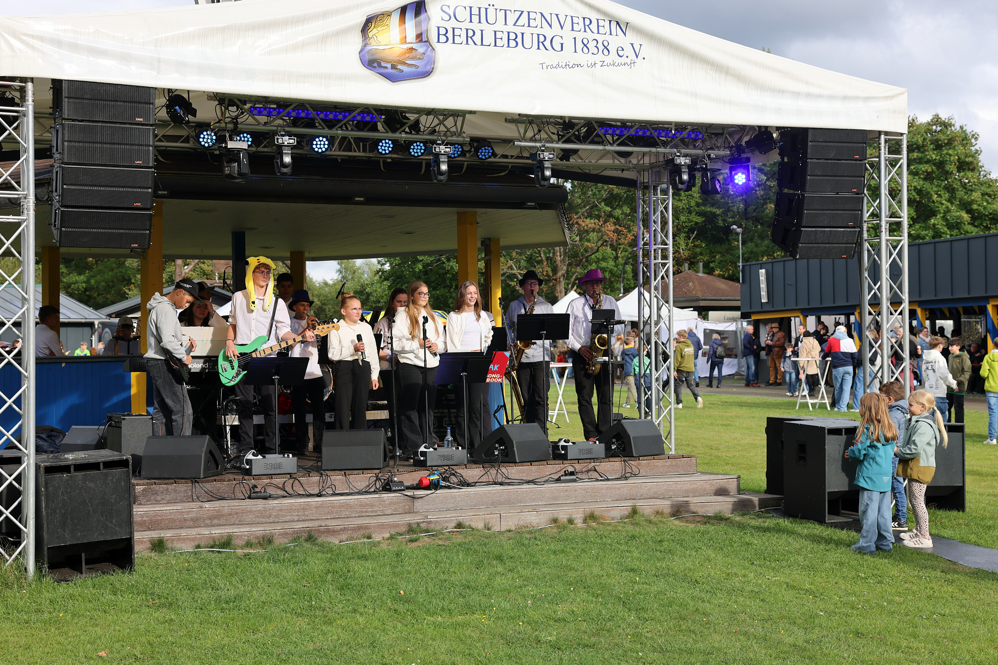 Die musikalische Eröffnung machte die JAG Schulband, die auf musikalisch hohem Niveau ihr großes Repertoire zeigte mit Songs von Amy Winehouse, Jamie Cullum und Robie Williams.