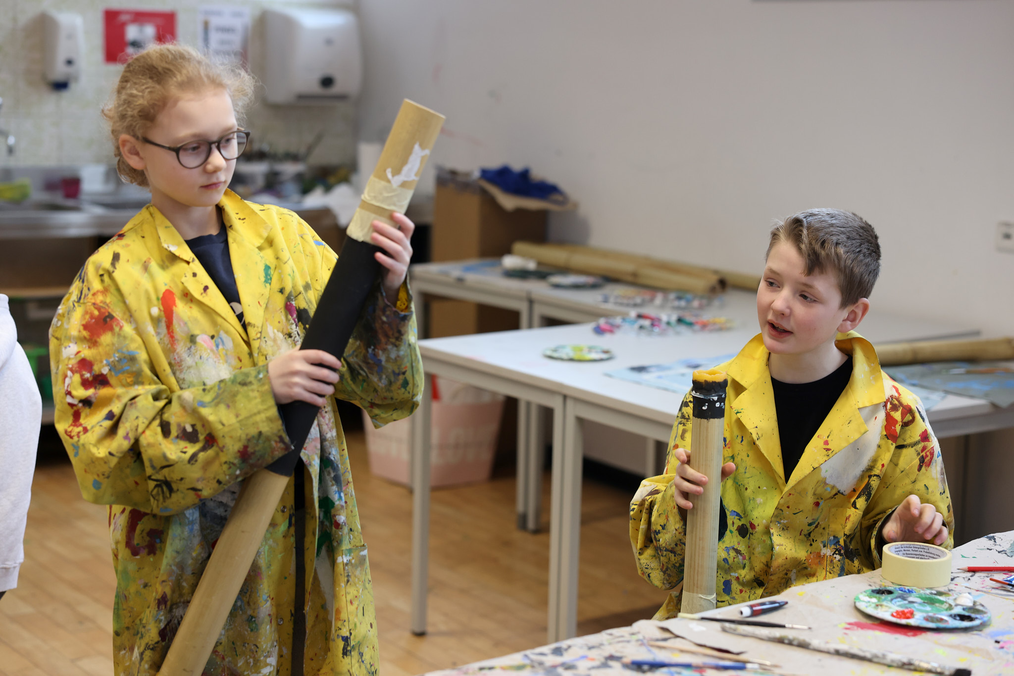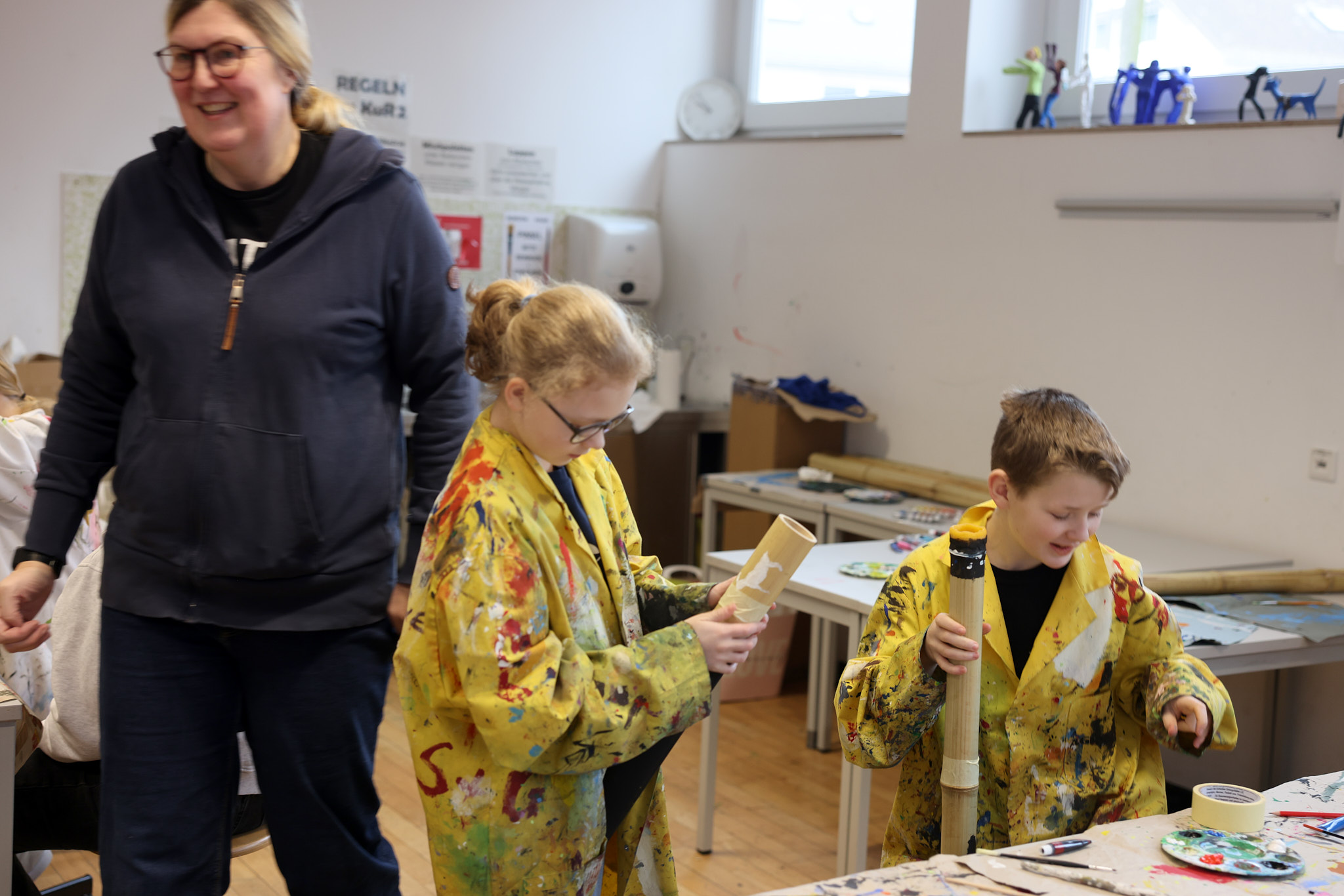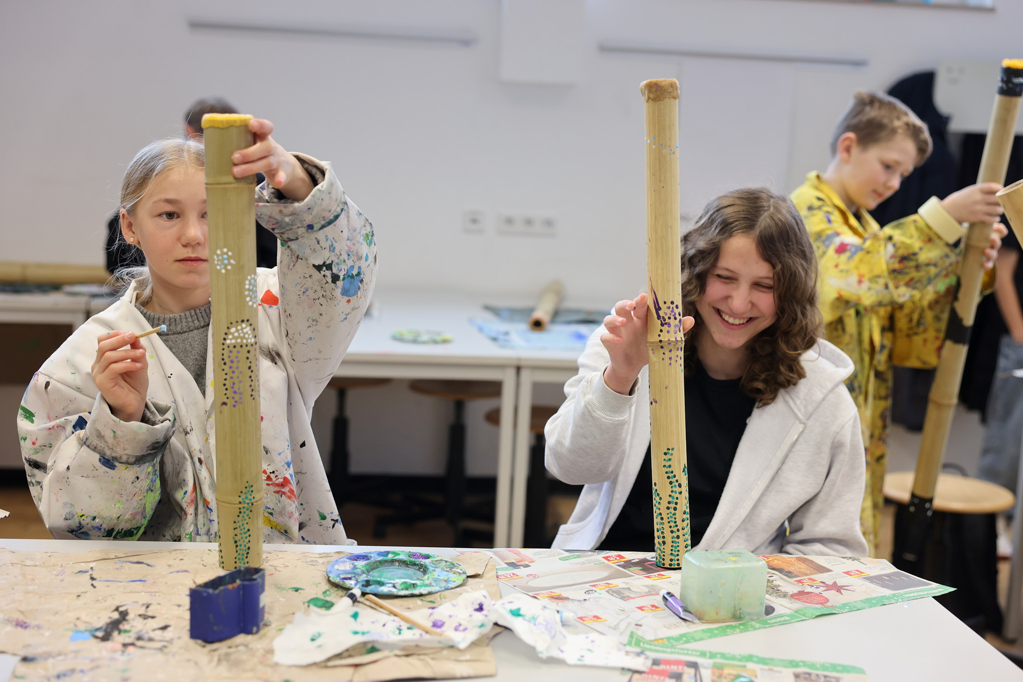 Wer schon immer mal bouldern gehen oder erste Erfahrungen im Programmieren mit Scratch sammeln wollte, der kam in der Projektwoche voll auf seine Kosten, denn während der fünf Projekttage wurden Lehr- und Stundenpläne ausnahmsweise mal zur Nebensache. Das Angebot an Projekten und Exkursionen, an denen die Schülerinnen und Schüler teilnehmen konnten, war groß und abwechslungsreich: So konnten Didgeridoos und Xylophone gebaut und bemalt, ein Crashkurs in Maskenbildnerei gemacht, neue Sportarten ausprobiert oder auch Schach gespielt werden. Die Schülerinnen und Schüler der fünften Klassen begaben sich auf die Spuren von Johannes-Althusius, bastelten althusiussche Kragen und Bärte und ließen ihn in selbstgedrehten Videos wieder lebendig werden. Wer sich musikalisch ausprobieren wollte, schnupperte ins Chorprojekt, wer einfach nur frische Waldluft brauchte, lief bei der Winterwanderung mit.