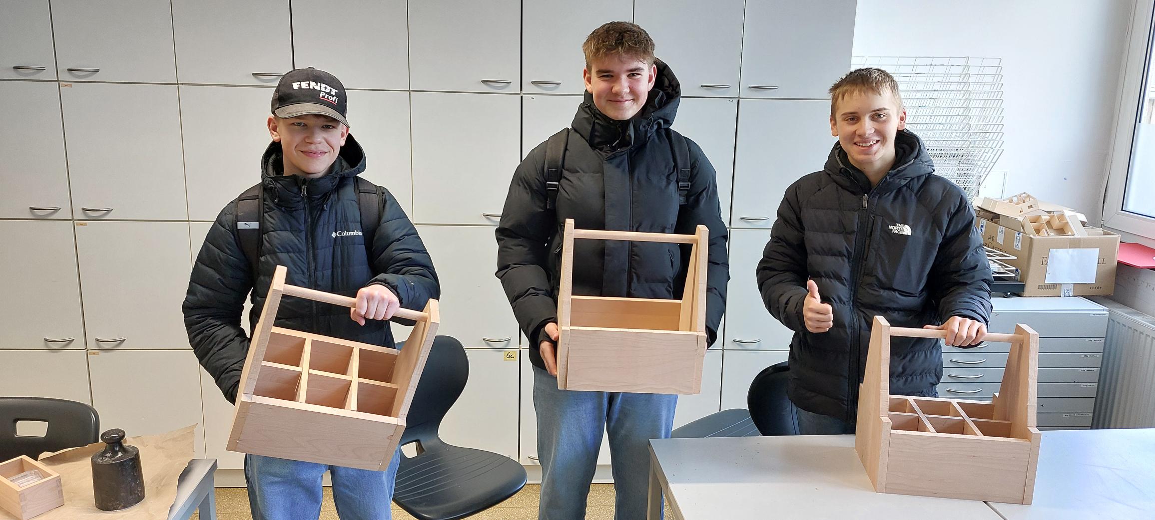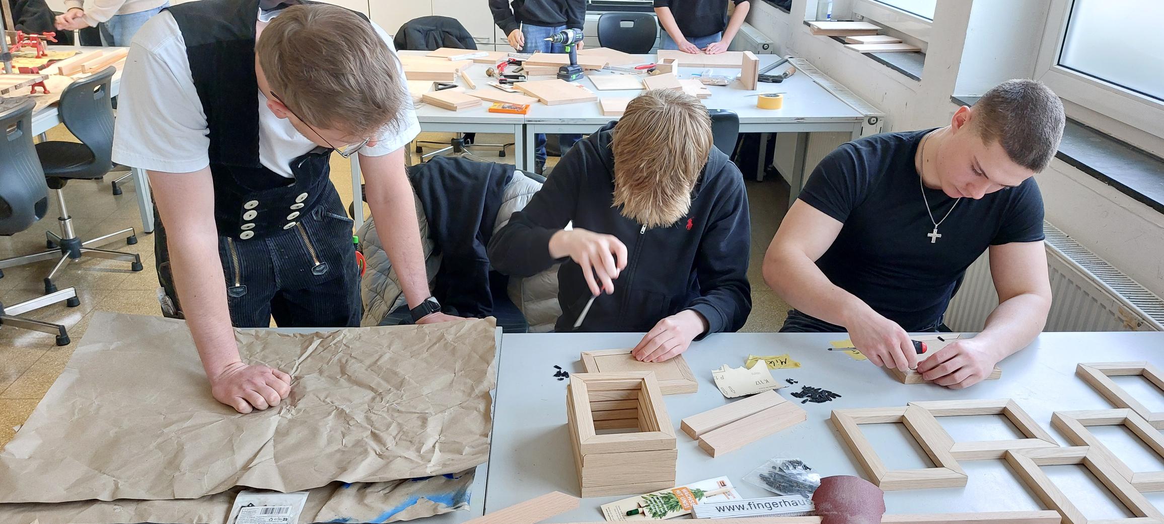 Im Projekt „Handwerk“ wurden die Schülerinnen und Schüler von den ehemaligen JAGlern Finn Gücker (Innungssieger, Hessenmeister und 5. der Deutschen Meisterschaft im Tischler-Handwerk) und Simon Lamb (Innungssieger und bester deutscher Prüfungsteilnehmer im Zimmerer-Handwerk) dabei unterstützt, Getränkehalter, Schachbretter und Bilderrahmen zu bauen. Das Material für das Projekt stellte die Firma Schmitt & Marburger Treppenbau zur Verfügung.